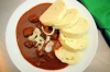 A cseh konyha egyik legkedveltebb étele a zsemlés knédli. Hagyományosan ezt vagy gulással – ami nálunk a pörköltnek felel meg, vagy vadassal vagy sült hússal/oldalassal és párolt káposztával eszik. Persze knédliből is sokféle létezik: a cseh (vagyis zsemlés) mellett van kelt, burgonyás, vegyes, szalonnás, lágy, no meg az édes gombócokat is ezzel a névvel illetik. KV kedvence a cseh knédli marha gulással. Ízleljük meg!
